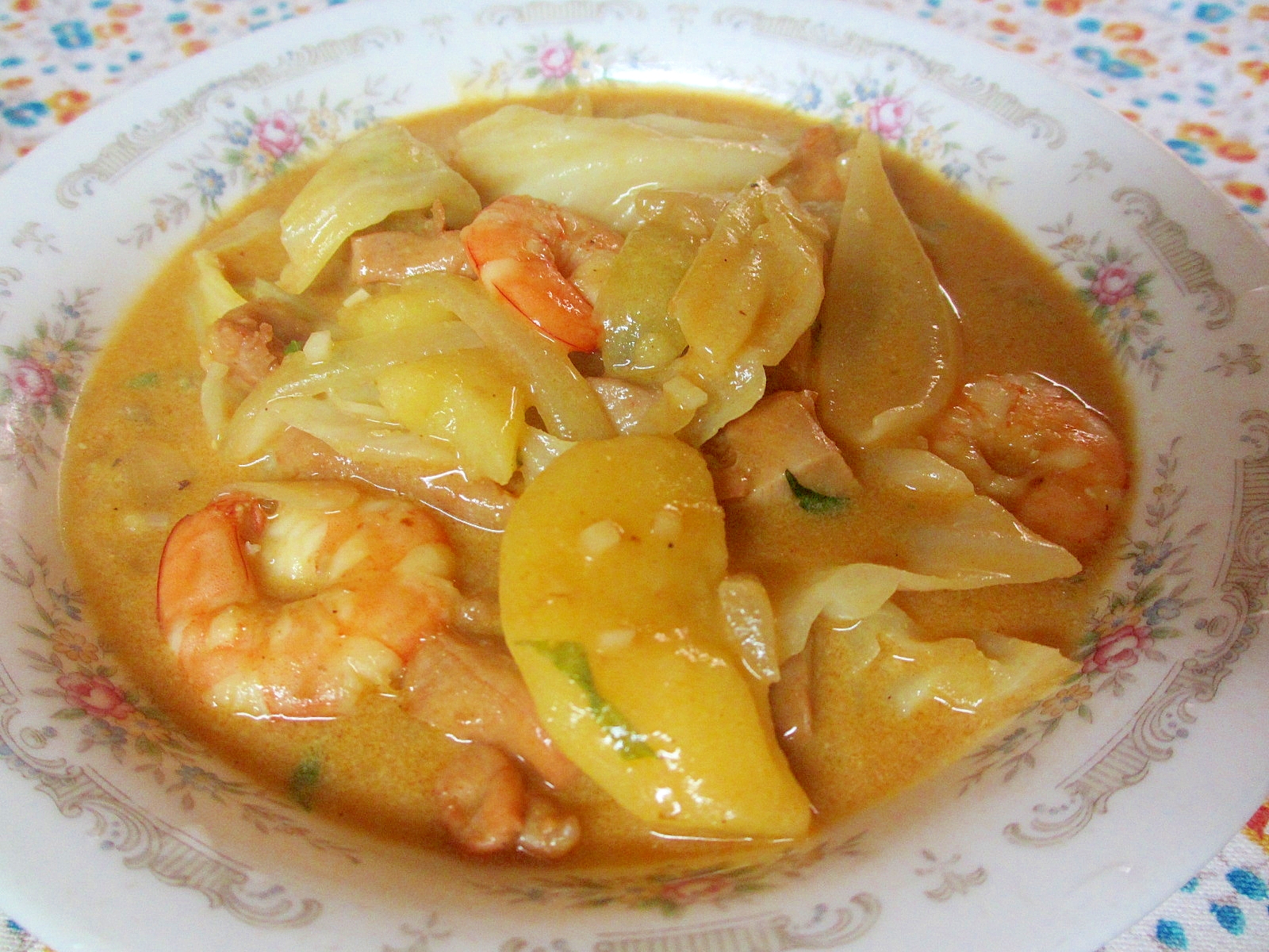 エビとチキンとキャベツのココナッツカレー レシピ 作り方 By Mococo05 楽天レシピ
